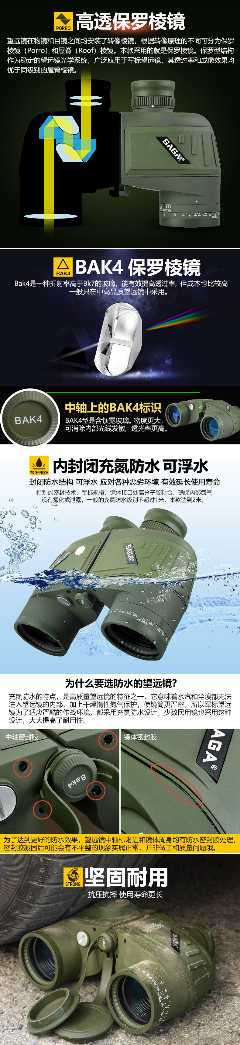 萨伽专业级罗盘十字坐标测距双筒望远镜高清高倍户外寻蜂防水夜视