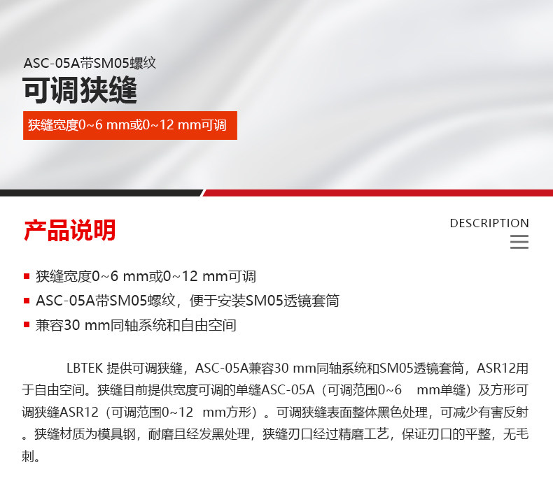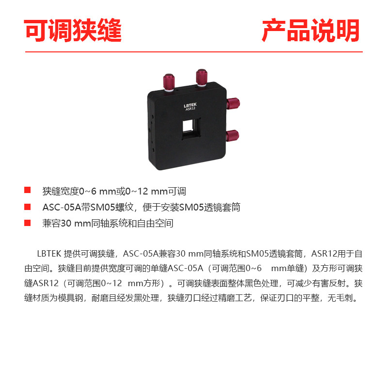 LBTEK麓邦光电科研实验可调方形狭缝0~12 mm兼容30 mm同轴系统和自由空间