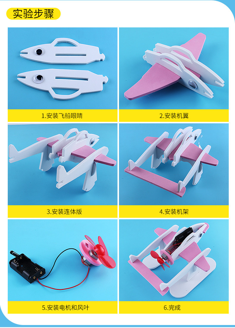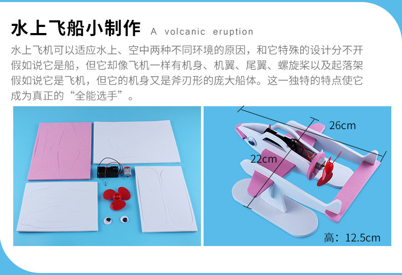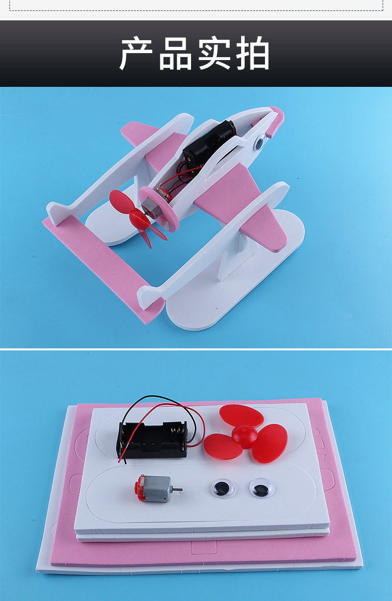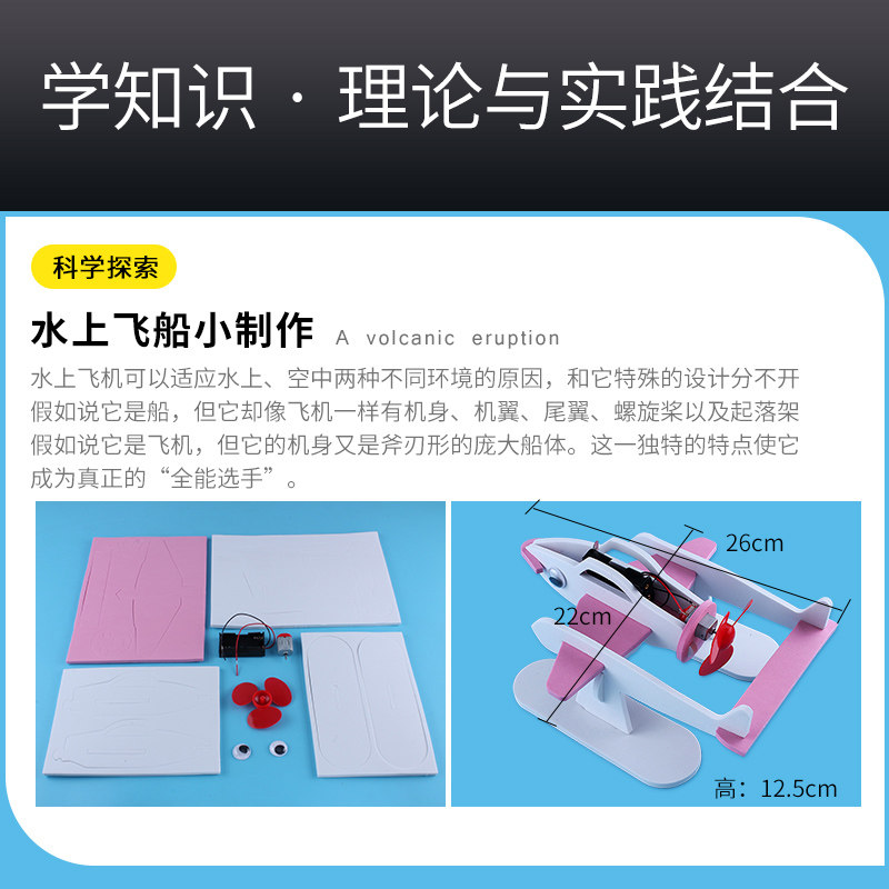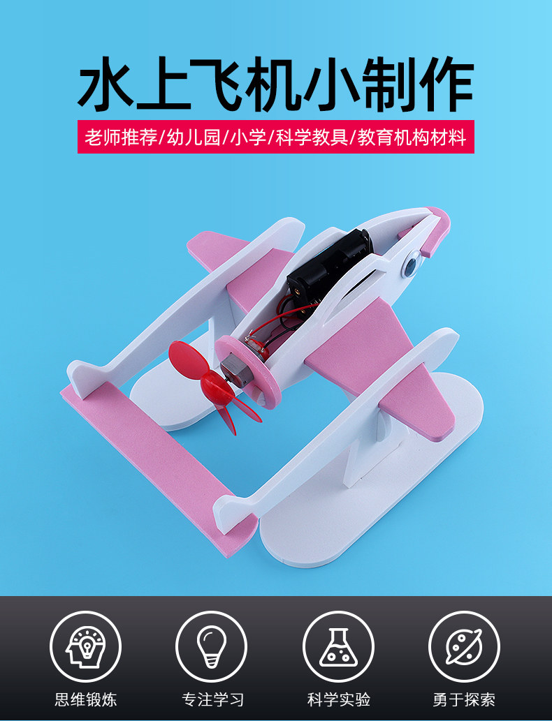 水上飞机 青少年科学实验电动水上飞机科技小制作小发明创意DIY科普材料包儿童幼儿园早教飞鱼机器人