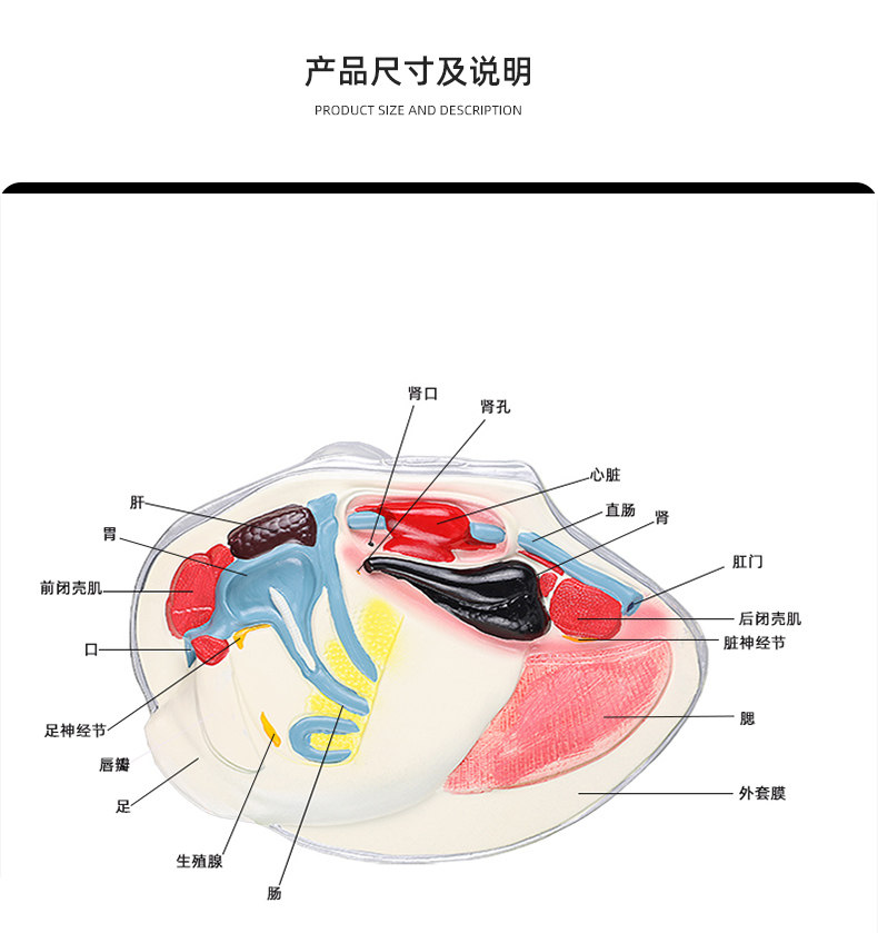 河蚌模型中学生物课教具大型结构水产品河蛤蜊鸟贝嘎啦瓦夸软体动物门蚌科教学演示教具