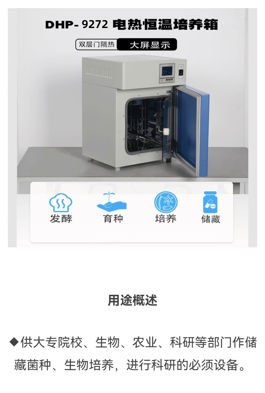 DHP-9272电热恒温培养箱270L大屏数显实验室菌种储藏设备