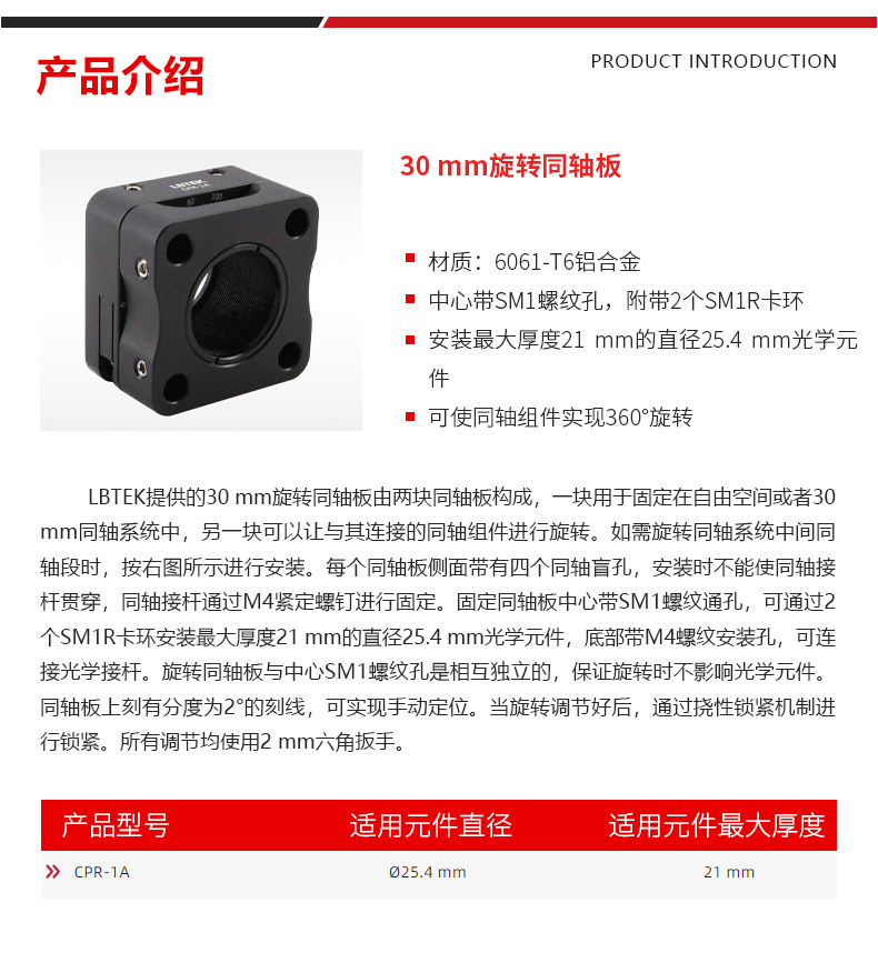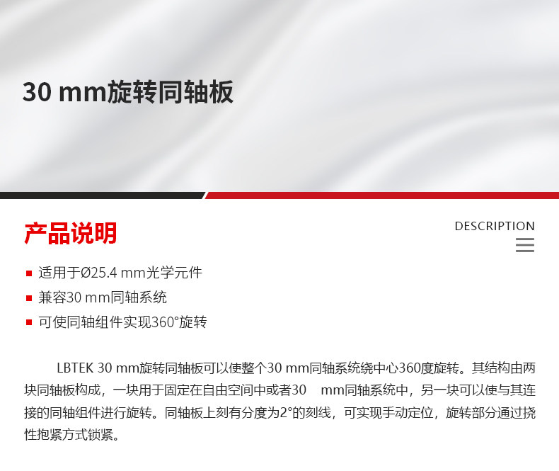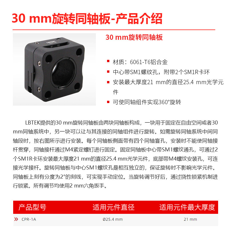 LBTEK麓邦30 mm旋转同轴板可使同轴组件实现360°旋转