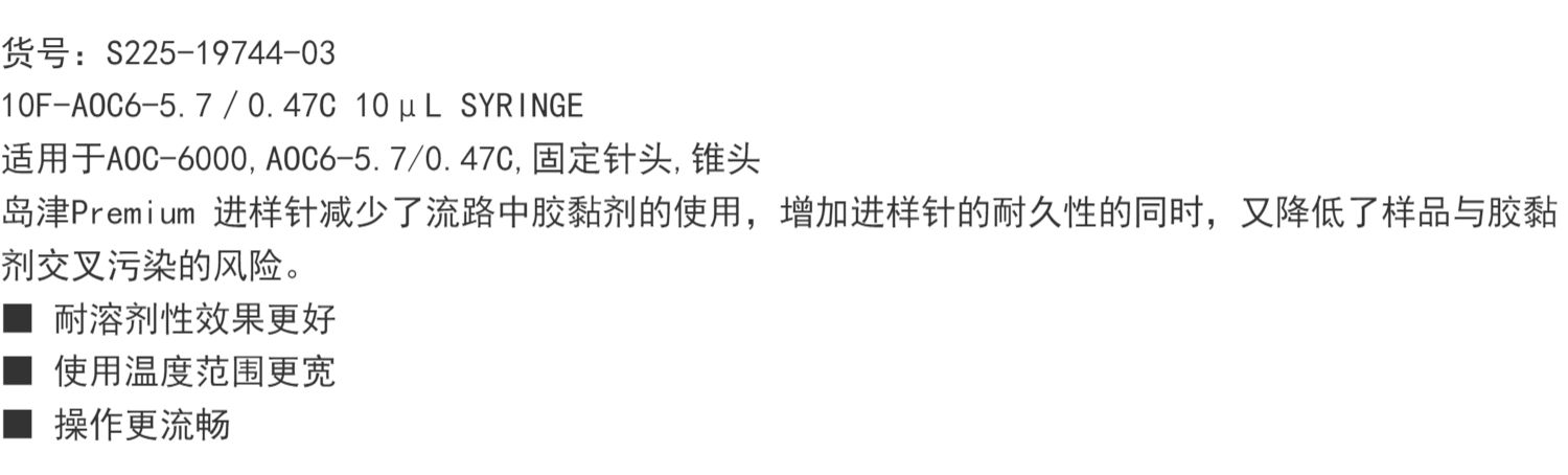 岛津进样器shimadzu固定针头锥头10uL气相自动进样针225-19744-03