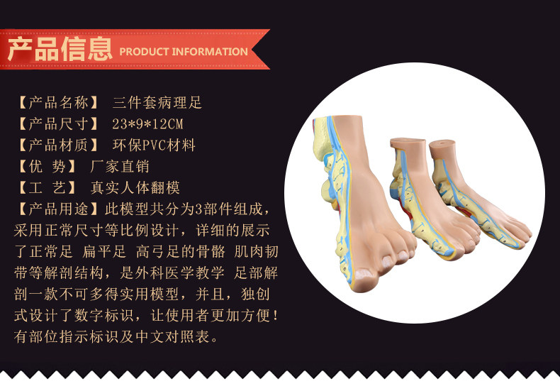 正常足 扁平足 弓型足 模型 足部病理模型人体足部肌肉解剖模型