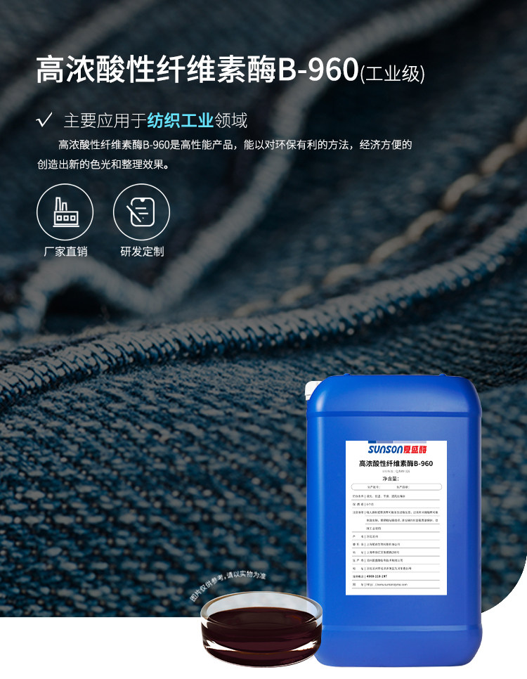 夏盛工业级高浓酸性纤维素酶B-960 液体纺织工业用 生物酶制剂