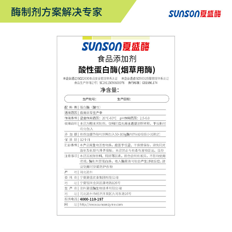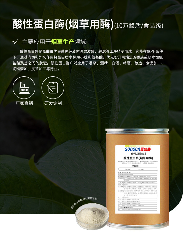 夏盛食品级酸性蛋白酶10万u/g 烟草专用酶 固体烟叶生物酶制剂