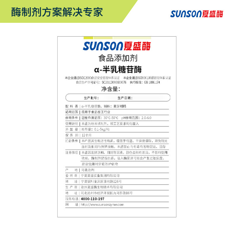夏盛 α-半乳糖苷酶 500u/g高活力固体食品级添加剂 生物酶制剂
