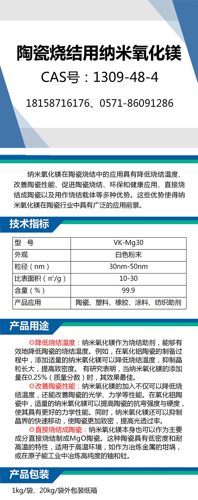 30nm纳米氧化镁粉 球形氧化镁纳米级 陶瓷烧结用高纯氧化镁轻烧粉