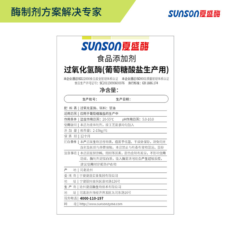 夏盛食品级过氧化氢酶 80万酶活 双氧水分解酶 液体食品添加剂
