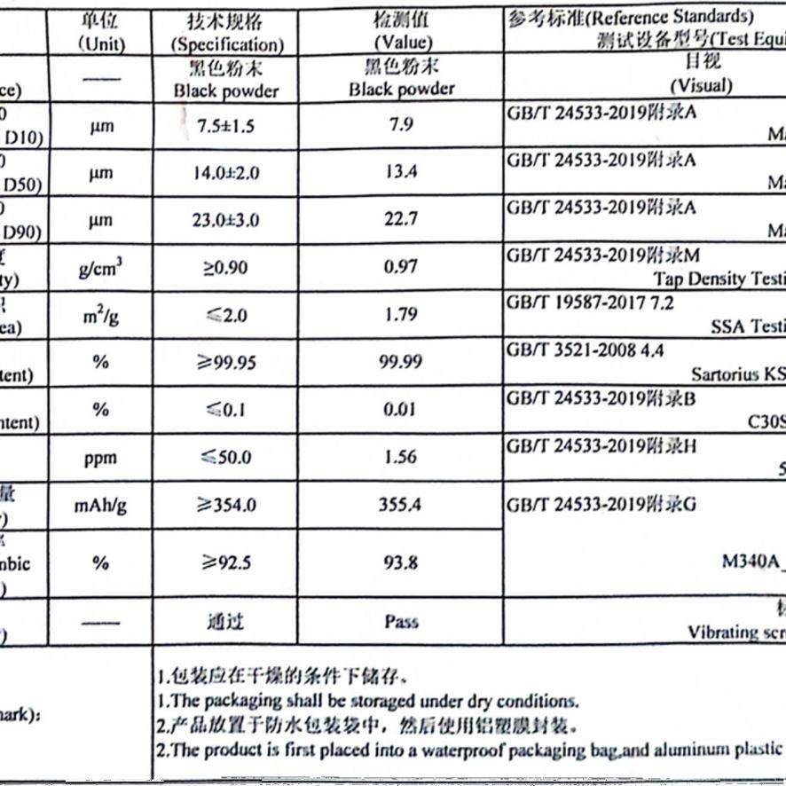 贝特瑞 超级快充人造石墨负极材料 SFC-E