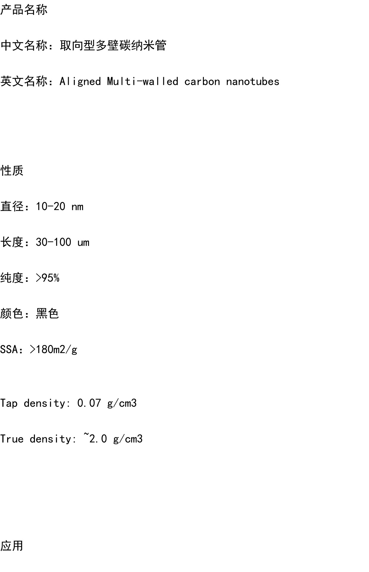 先丰纳米 取向型多壁碳纳米管 XFM61