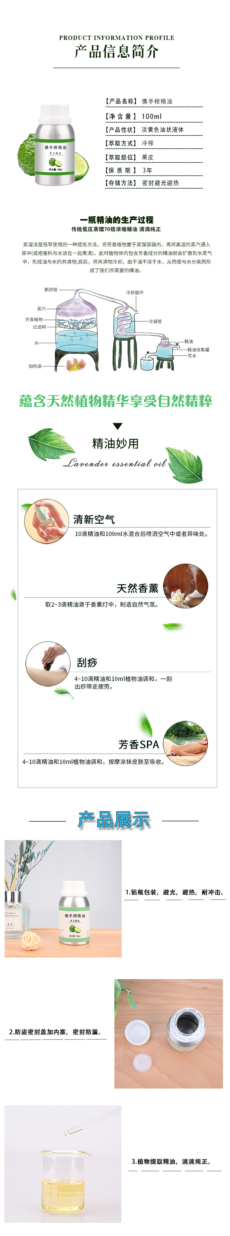 佛手柑精油10ml-1000ml香柠檬单方植物护肤香薰美容院刮痧按摩