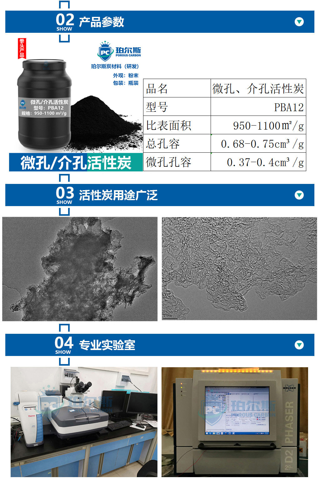 珀尔斯炭材料 微孔 介孔活性炭PBA12 储氢材料 微电子 催化剂载体