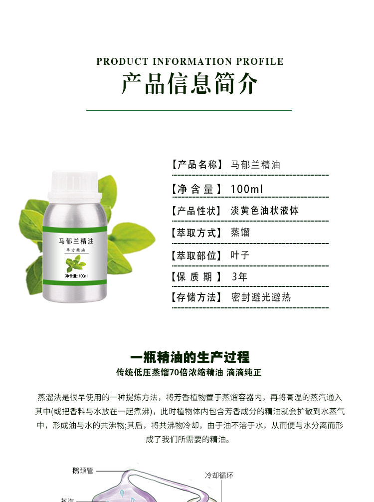 马郁兰精油10ml-1000ml单方植物提取护肤香薰美容院刮痧全身按摩