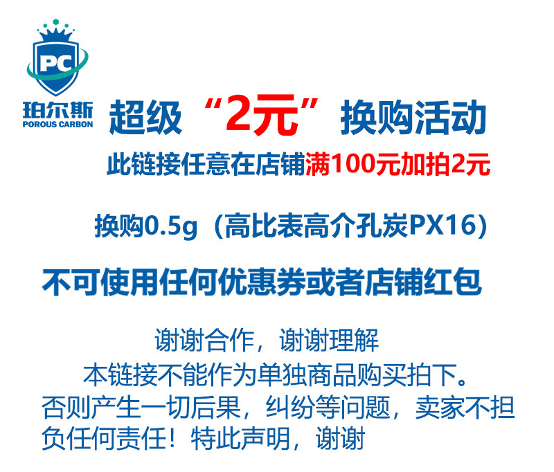 珀尔斯炭材料 2元换购活性炭 根据详情页介绍购买