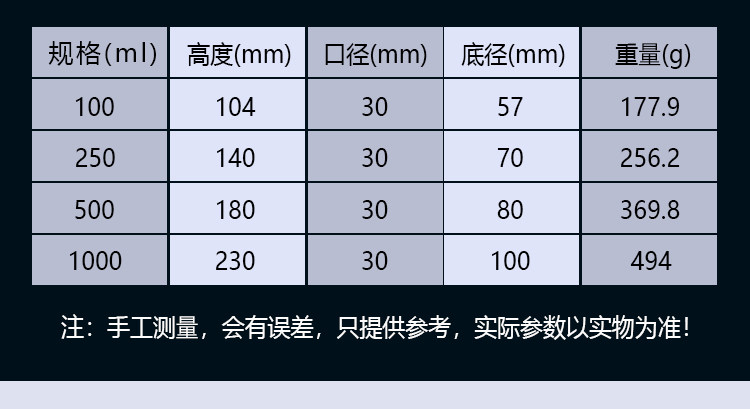 | 透明蓝盖瓶1000ml | ¥ 登录可见 | ¥ 登录可见 | 9999 件 | 669272952724 |