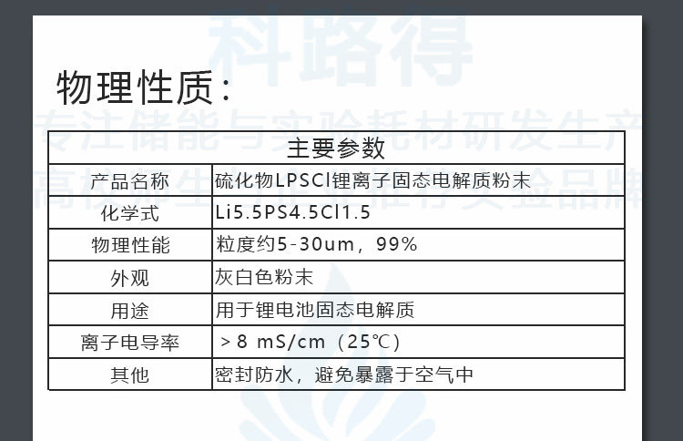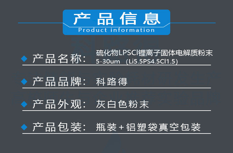 硫化物LPSCl锂离子固体电解质粉末5-30umLi5.5PS4.5Cl1.5电池材料