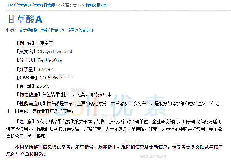 甘草酸A 甘草酸 95% 甜味剂 10g/袋 50g/袋