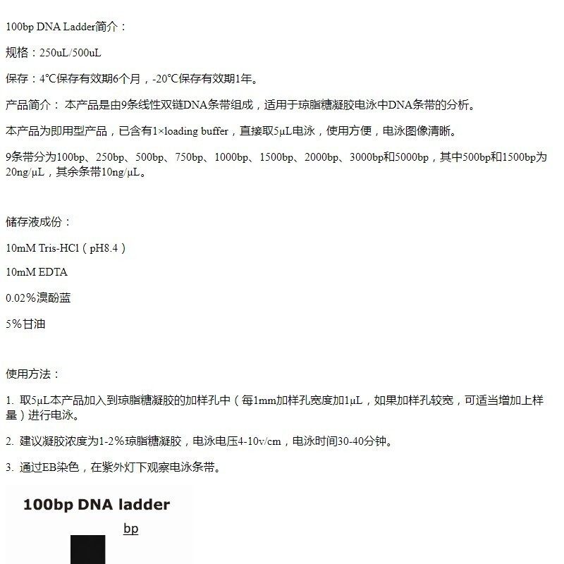 100bp DNA Ladder 分子生物学试剂 实验科研用试剂
