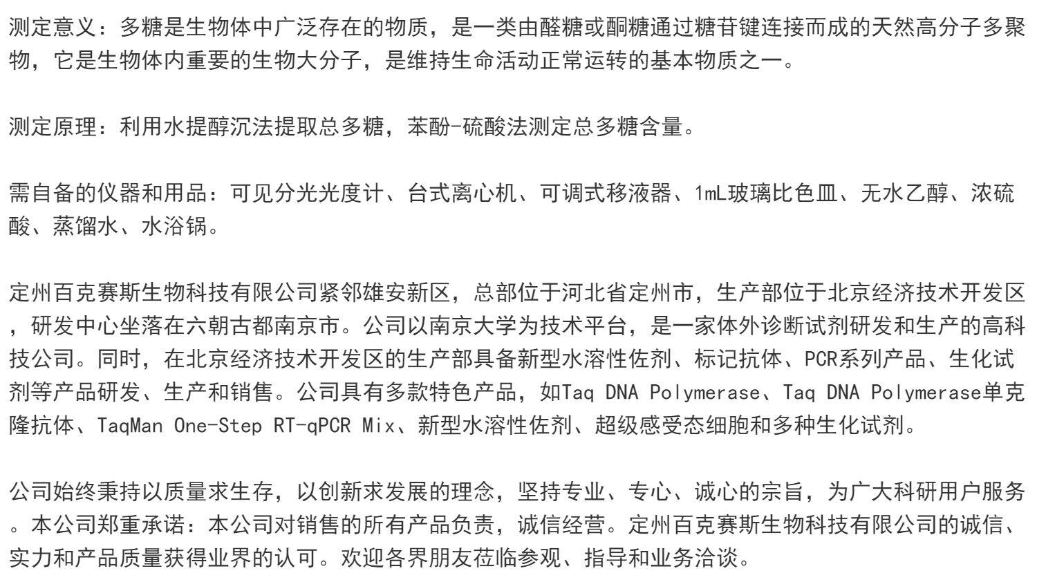 总多糖含量检测试剂盒 实验用生化试剂盒 百克赛斯生物