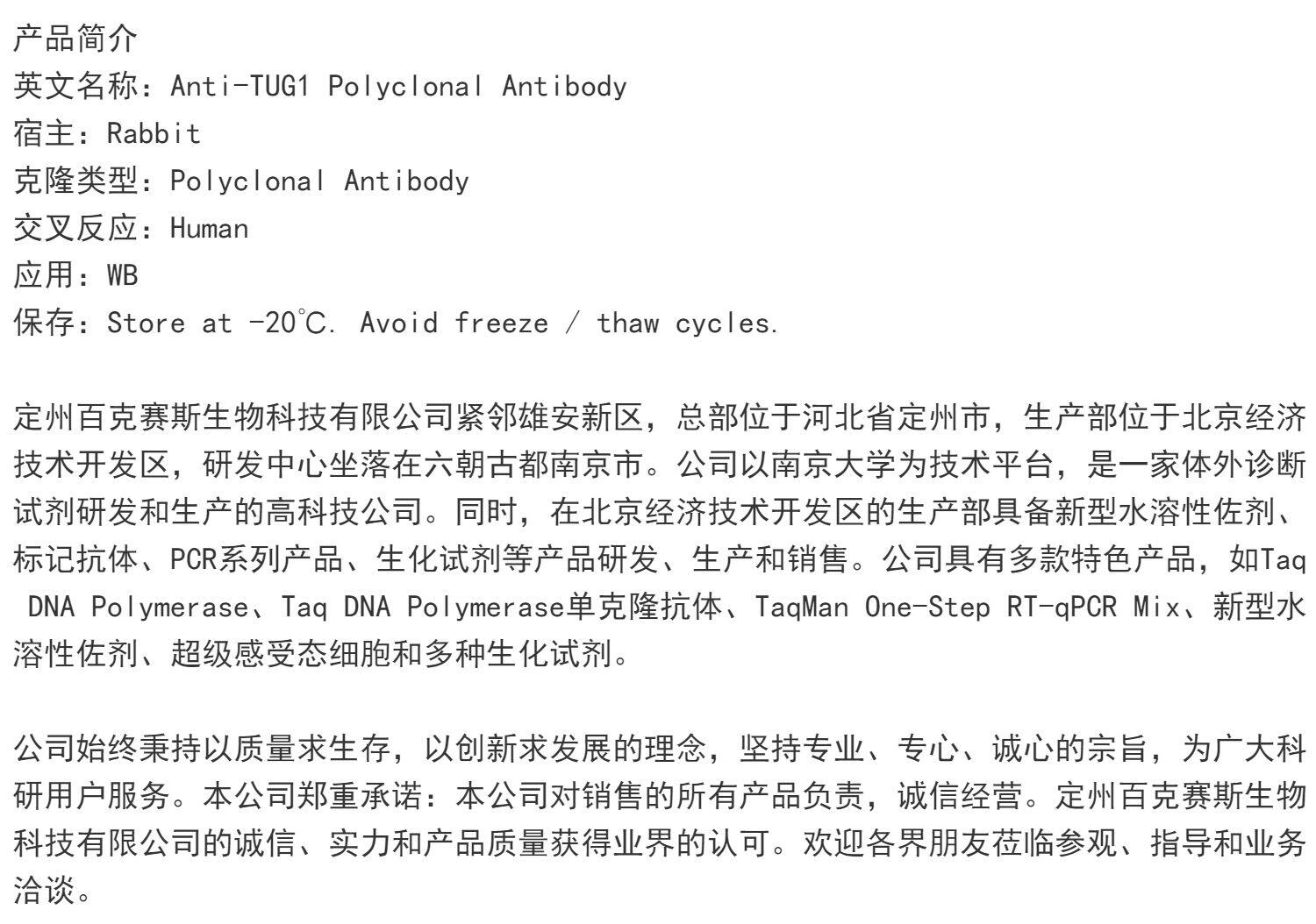 Anti-TUG1 Polyclonal Antibody 实验用多克隆抗体 百克赛斯生物