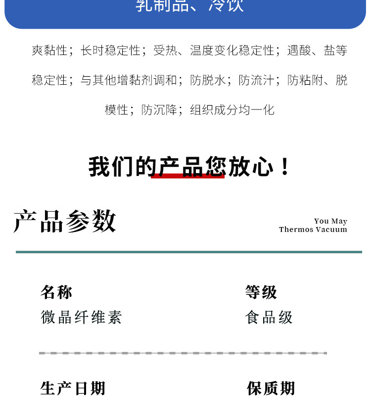 微晶纤维素食品级 MCC食品抗结剂乳化剂分散剂压片辅料增稠剂500g