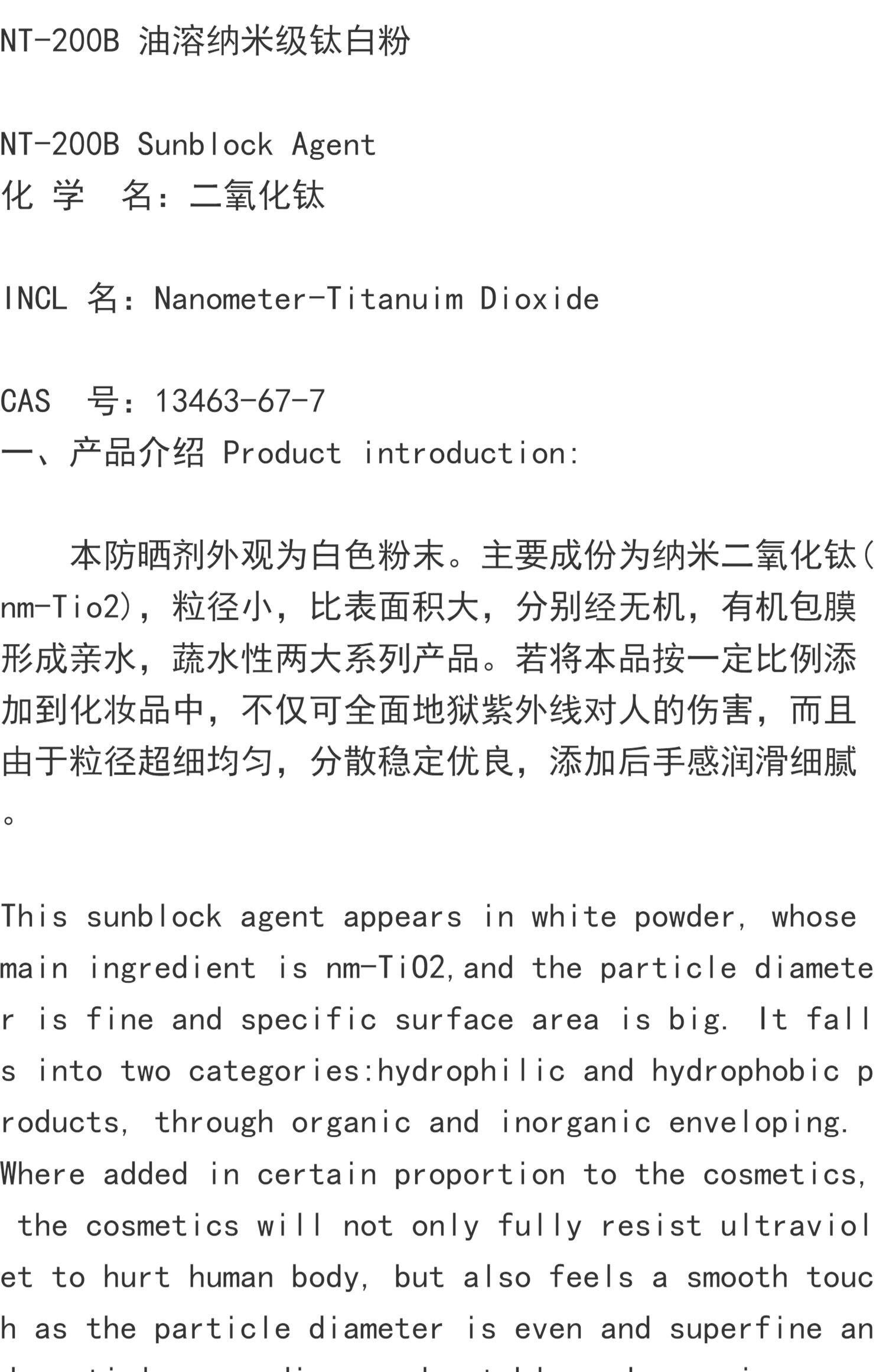 NT-200B油溶纳米级钛白粉