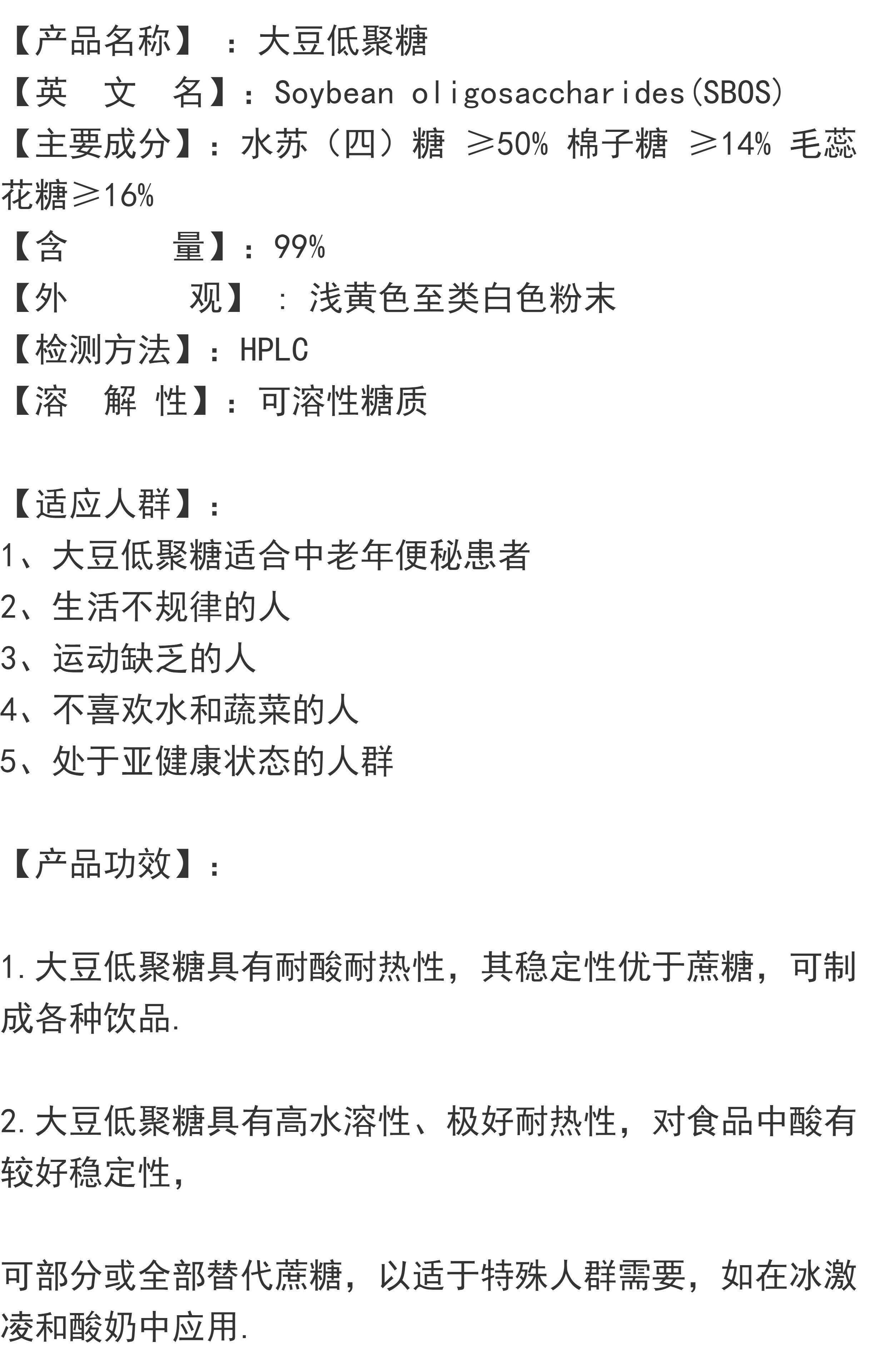 厂家供应 含量99% 大豆低聚糖粉 营养强化剂 食品级甜味剂 1000g