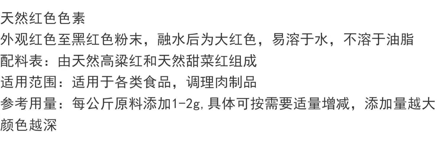 天然大红色素 调理肉制品专用甜菜红色素水溶天然高粱红色素粉末