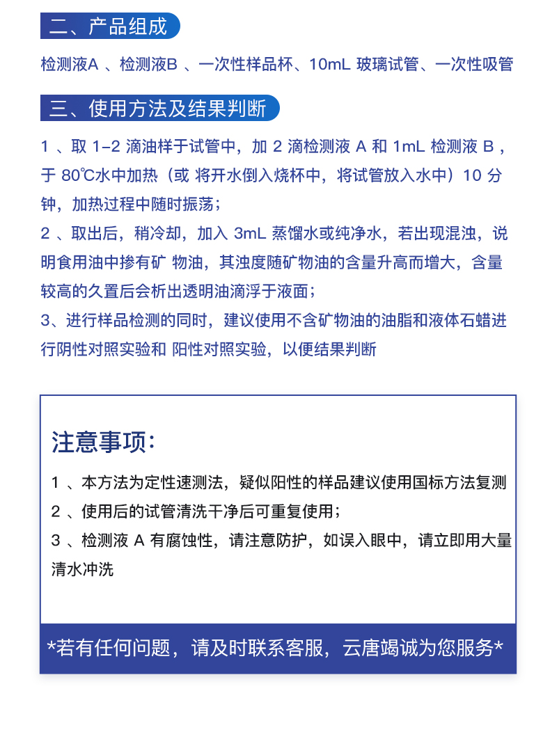 食用油检测试纸食用油中矿物油煤油试纸劣质油掺假快速检测试剂盒