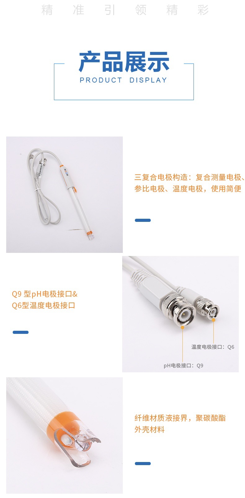 恒铠上海雷磁 E-301-F PH复合电极传感器 酸度计电极 配PHS-3E