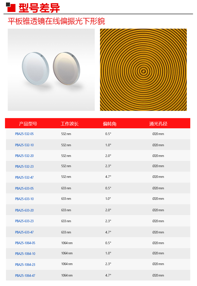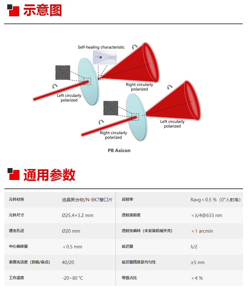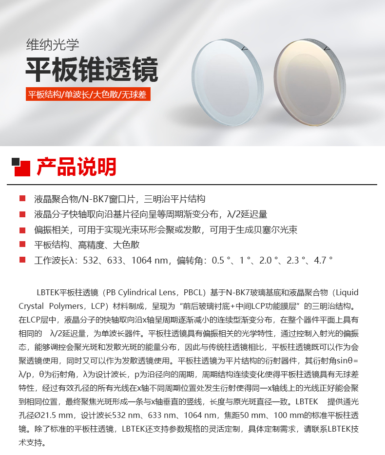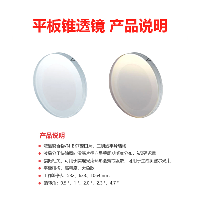 LBTEK麓邦光电科研实验平板锥透镜液晶聚合物1英寸规格通光孔径?20mm