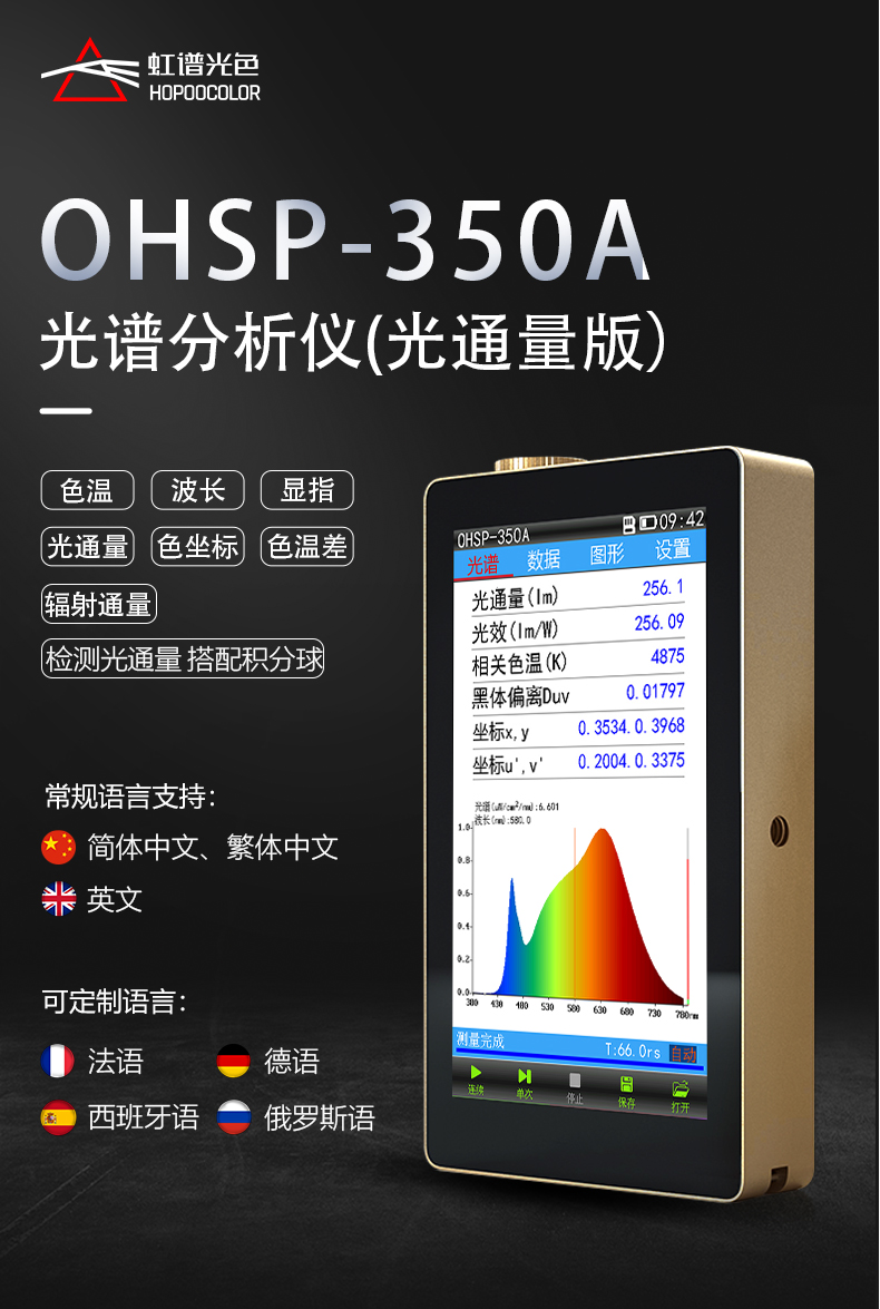 光通量测试内窥镜光源流明测试仪OHSP350A手持式光谱仪色温光谱