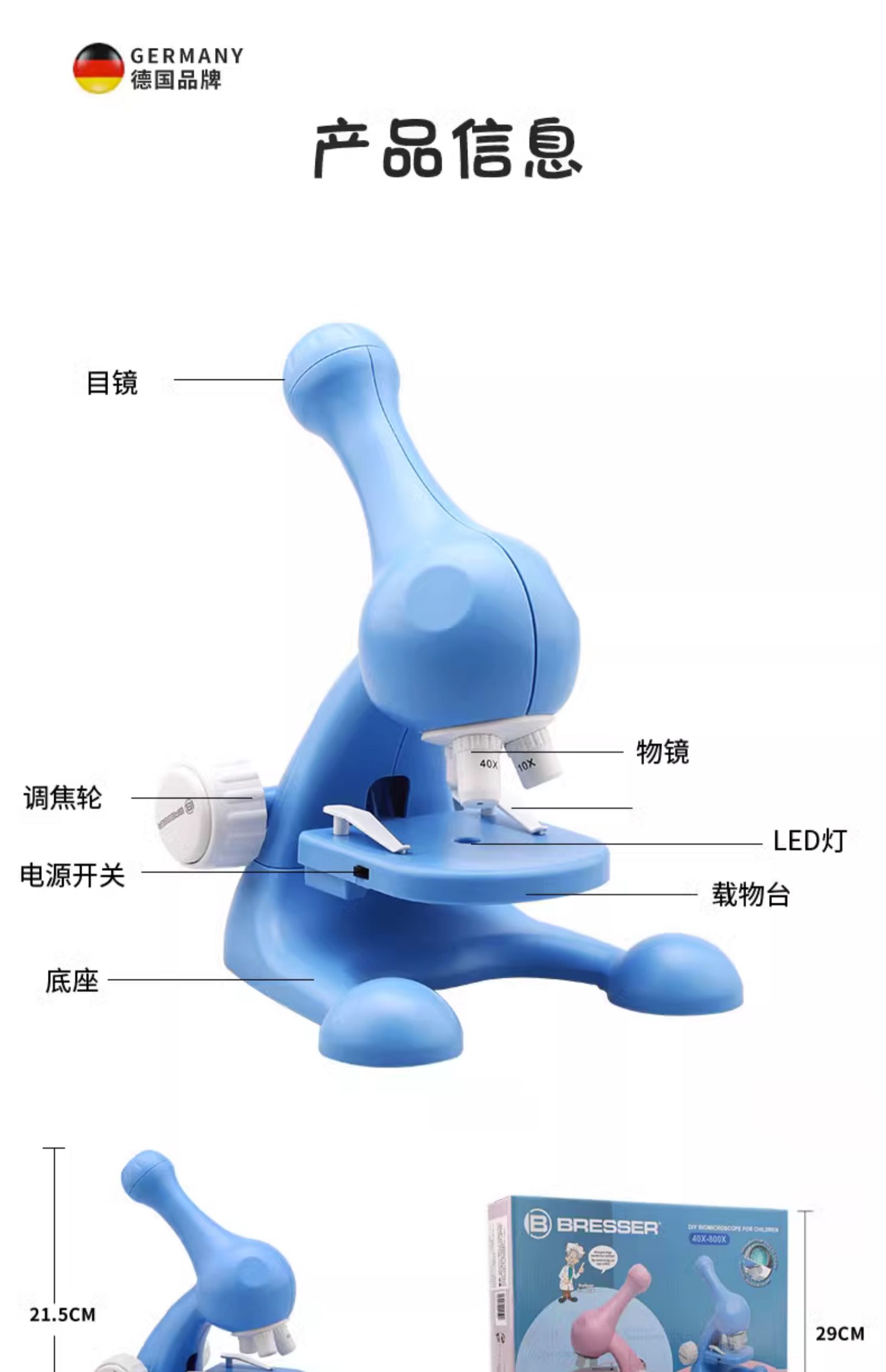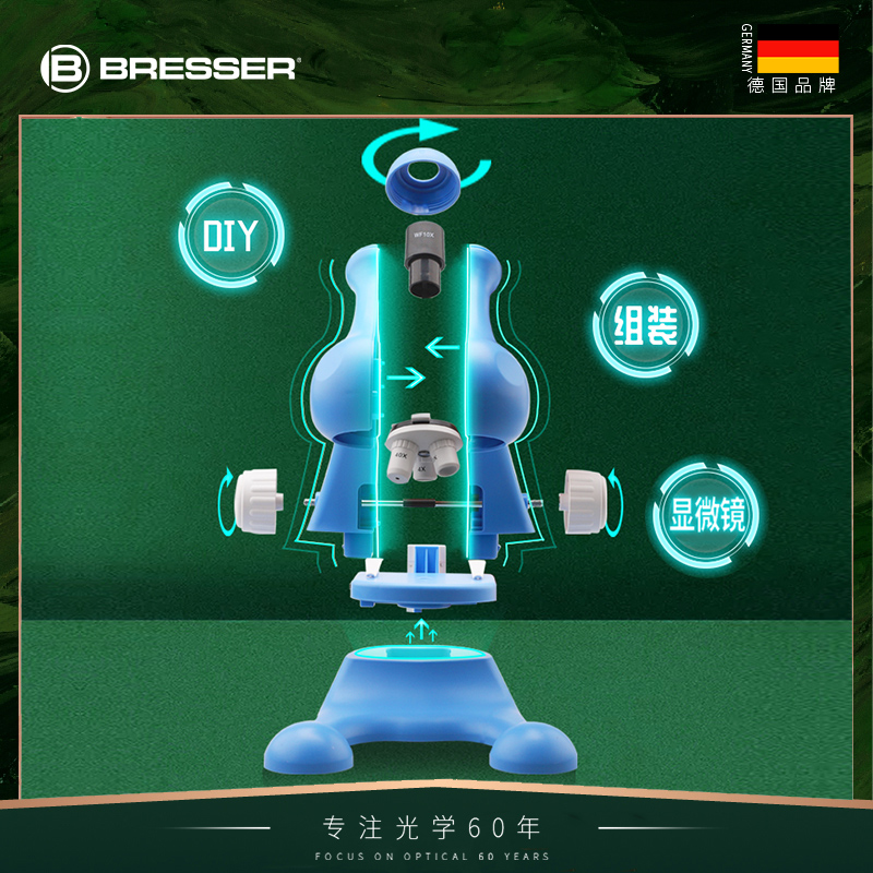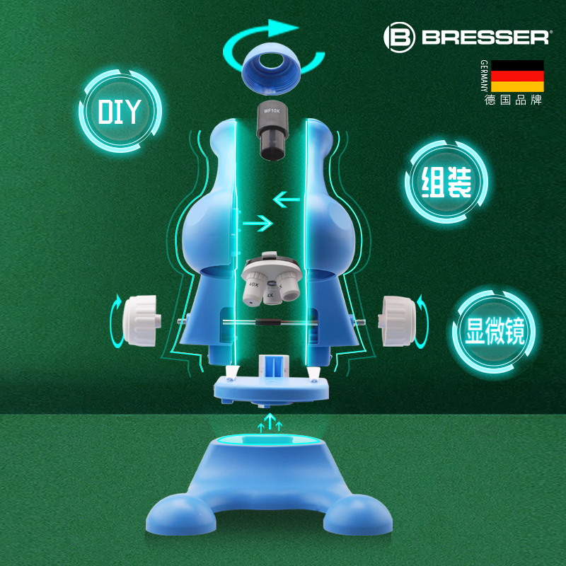 BRESSER儿童diy显微镜科学小学生生物光学实验套装六一儿童节礼物
