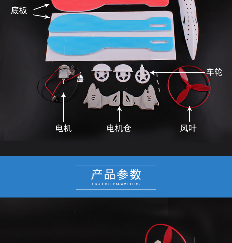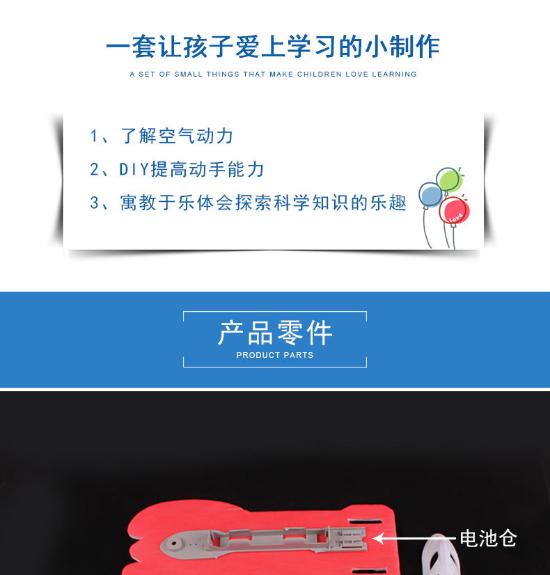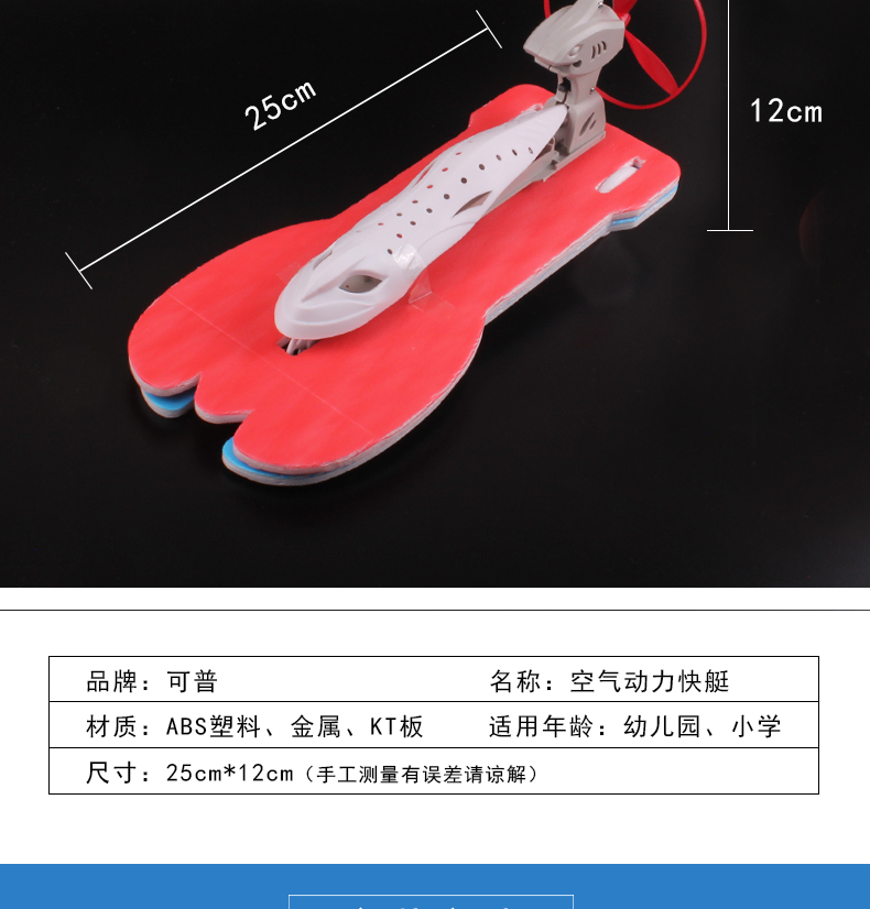 空气动力快艇电动水陆两栖轮船模型乘风号儿童趣味科学实验拼接教具DIY益智车船拼装材料包比赛用