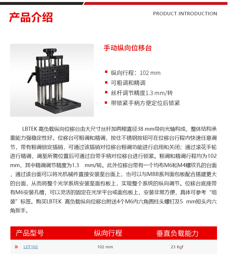 | LDT102【纵向行程:102 mm/垂直负载能力23 Kgf】 | ¥ 登录可见 | ¥ 登录可见 | 9999 件 | 794086403435 |