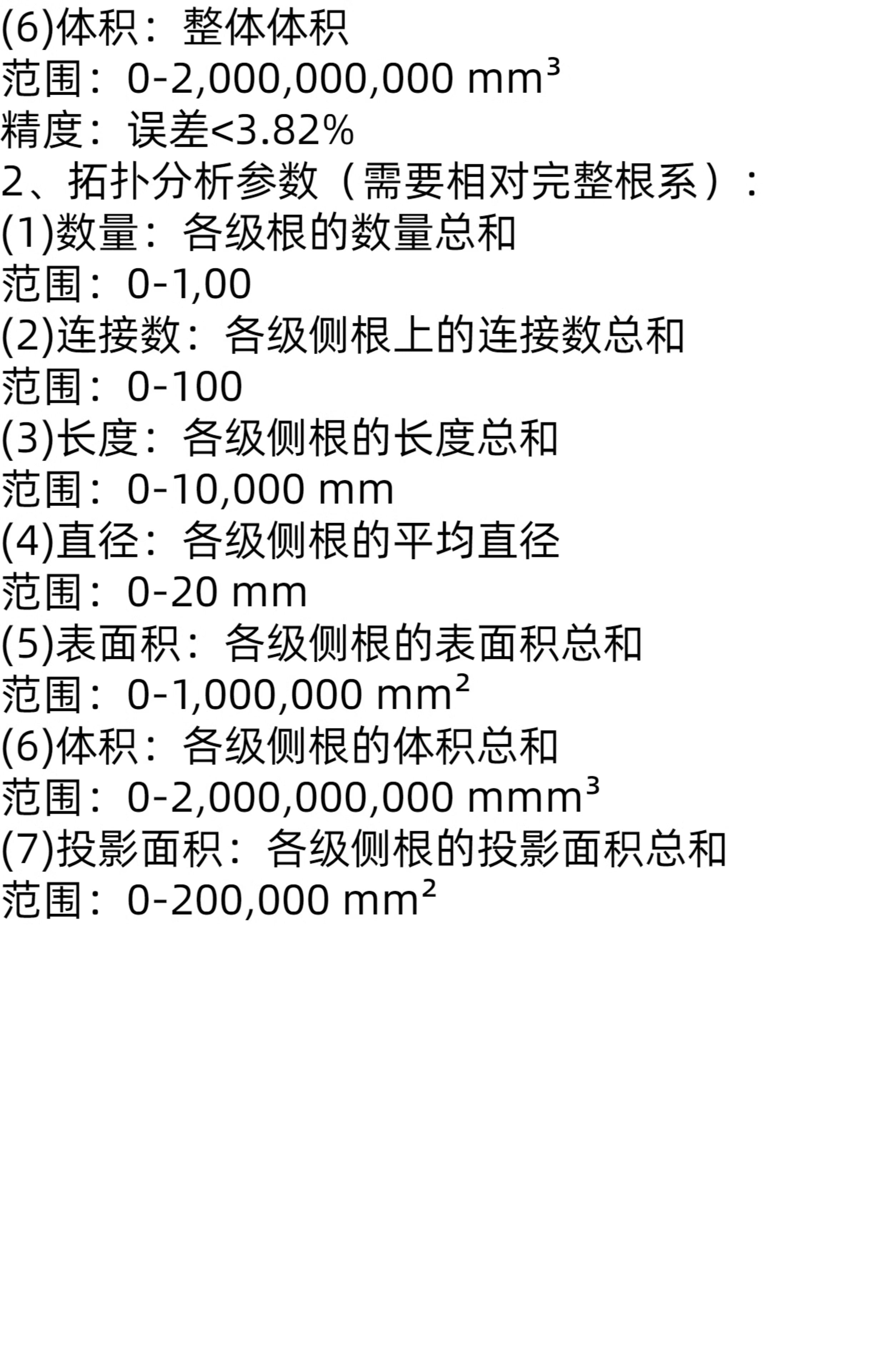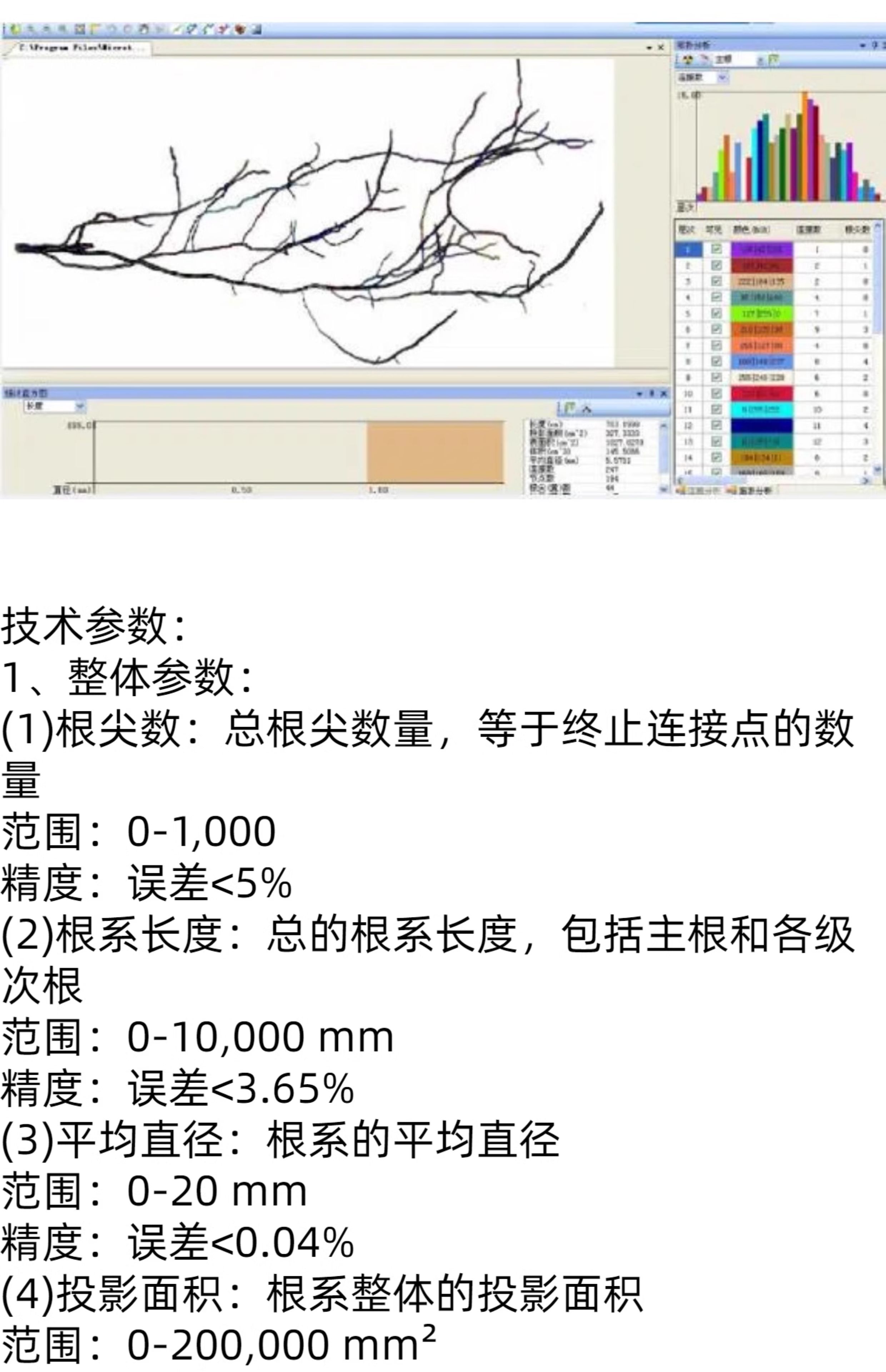 GXY-A根系分析系统 直径:各级侧根的平均直径 范围:0-20 mm