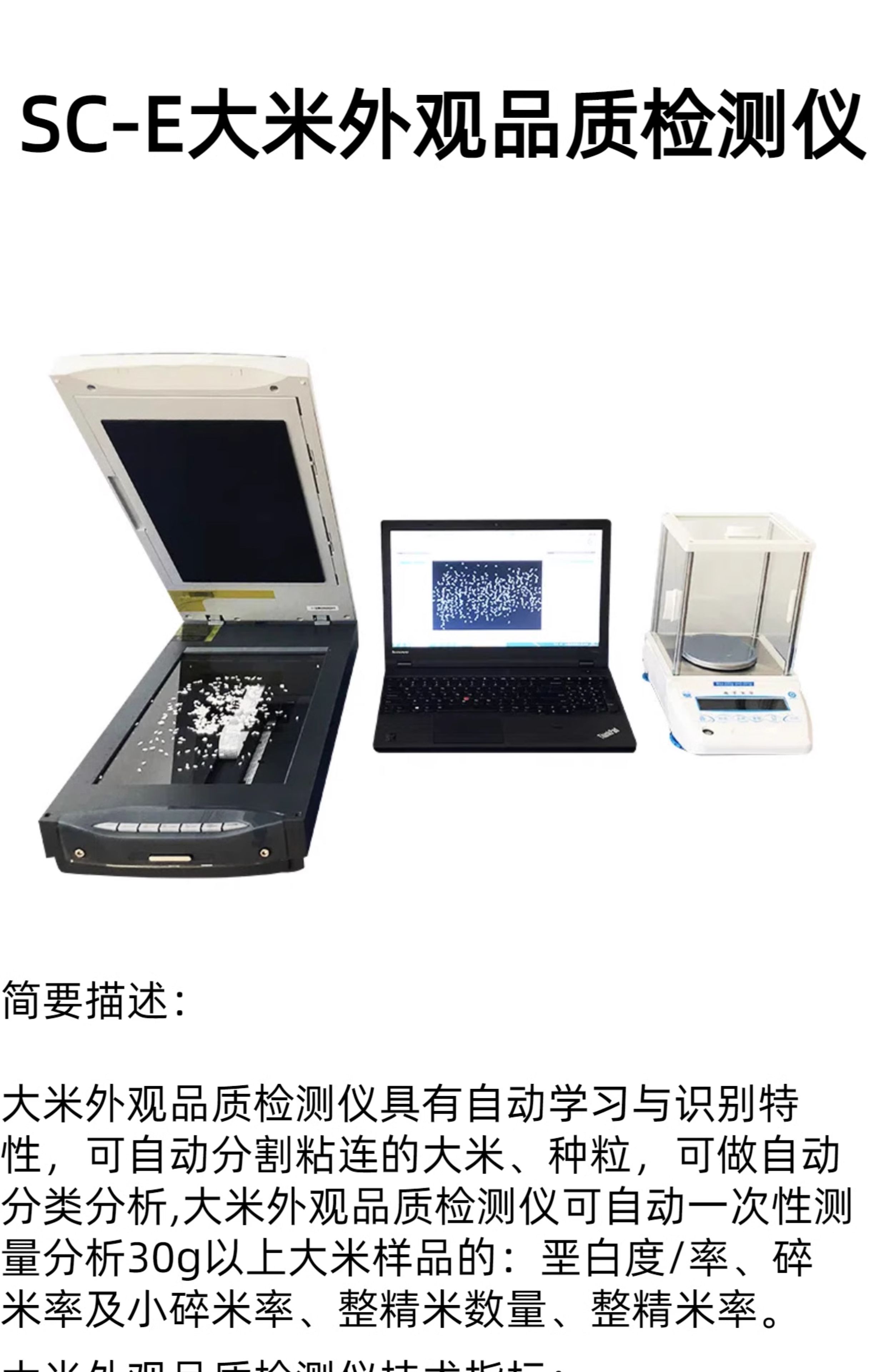 SC-E大米外观品质检测仪精准自动检测多参数、批量化的自动分析