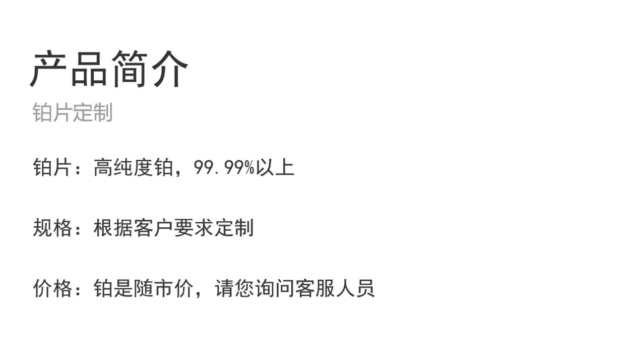高纯度铂制品加工定制 铂板管环靶材电极 舟 铂棒 铂颗粒 铂坩埚