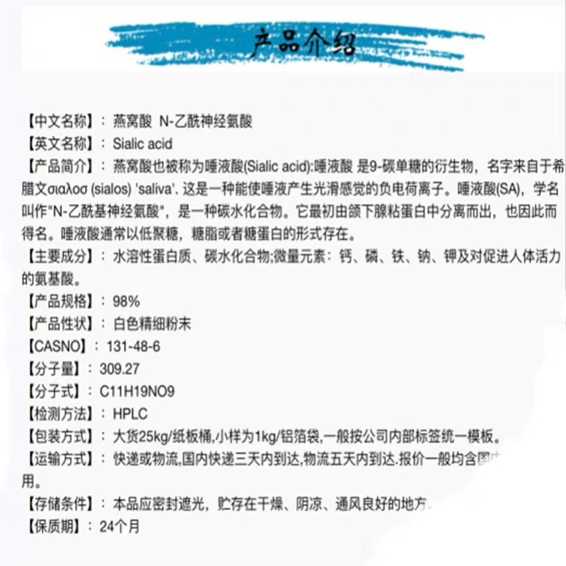 燕窝酸粉98% N-乙酰神经氨酸燕窝提取物燕窝酸唾液酸50克正品包邮