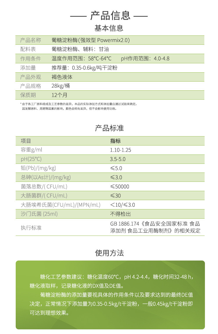 夏盛食品级葡糖淀粉酶(Powermix2.0型)11万u/ml 液体食品添加剂