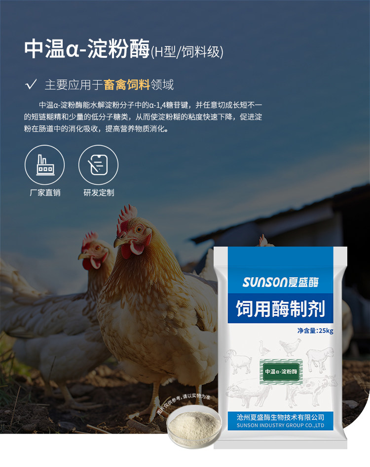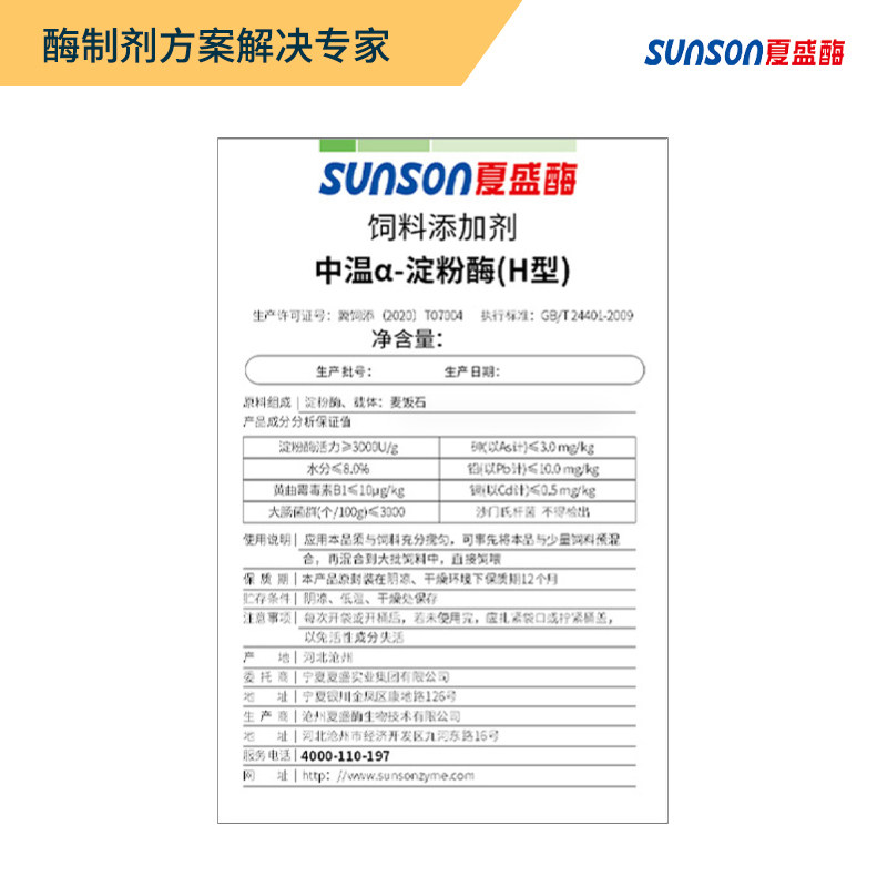 夏盛饲料级淀粉酶中温H型3千u/g提饲料利用促畜禽消化吸收酶制剂