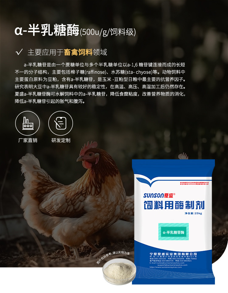 夏盛饲料级半乳糖苷酶500u/g 防畜禽腹泻动物消化酶 饲料酶制剂
