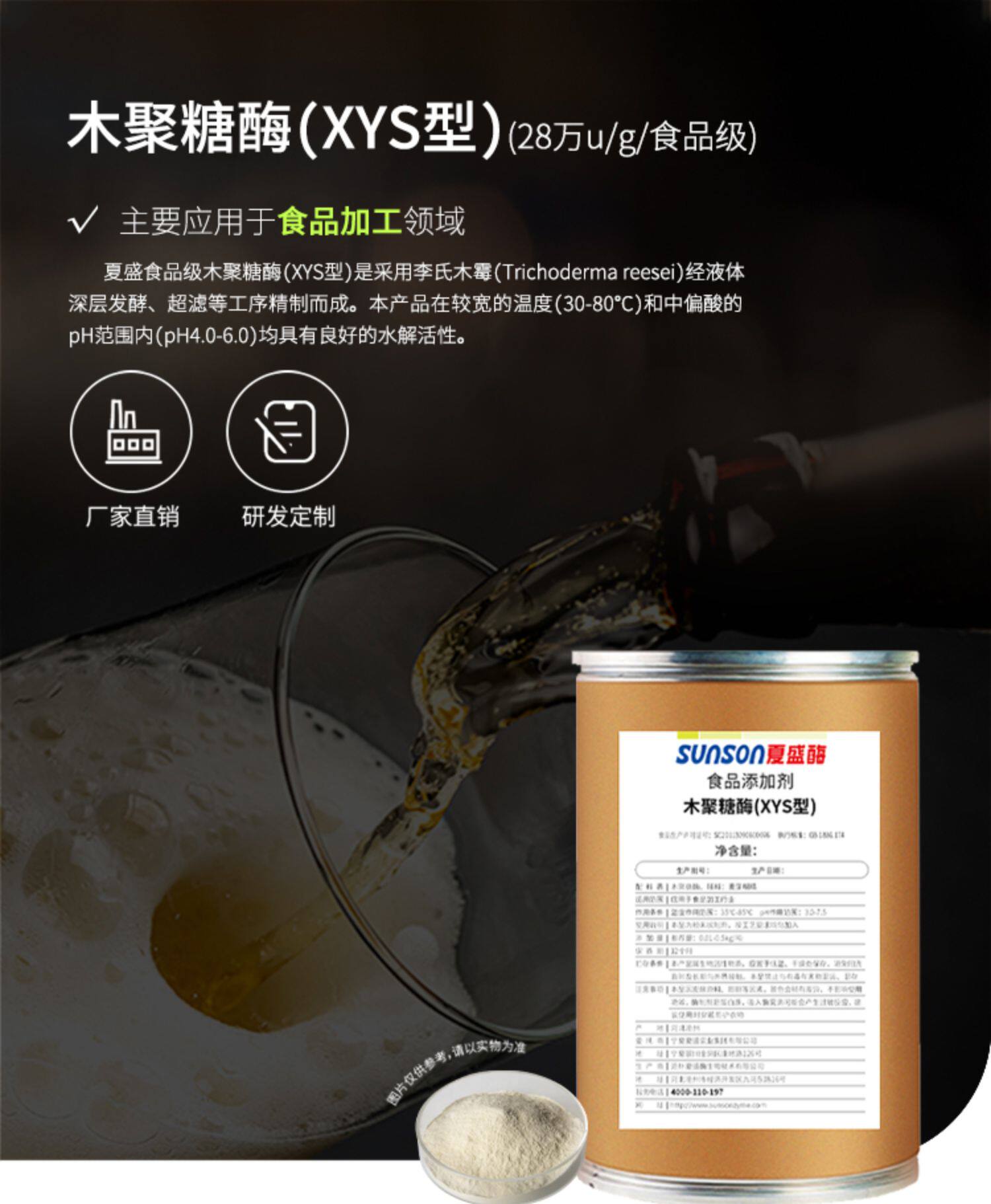 夏盛食品级木聚糖酶YYS型28万u/g 水解木聚糖减少酒类浑浊 添加剂