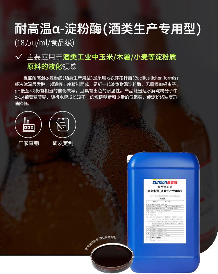 夏盛食品级耐高温α-淀粉酶(酒类生产专用)18万u/ml 液体添加剂