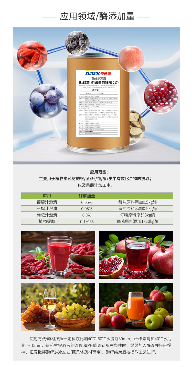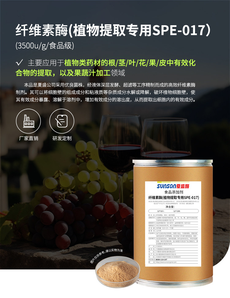 夏盛 纤维素酶3500u/g食品级植物提取酶SPE017加速植提果汁降粘度