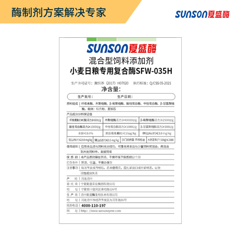 夏盛 小麦日粮复合酶SFW-035H饲料级添加剂 小麦次粉饲料用酶制剂