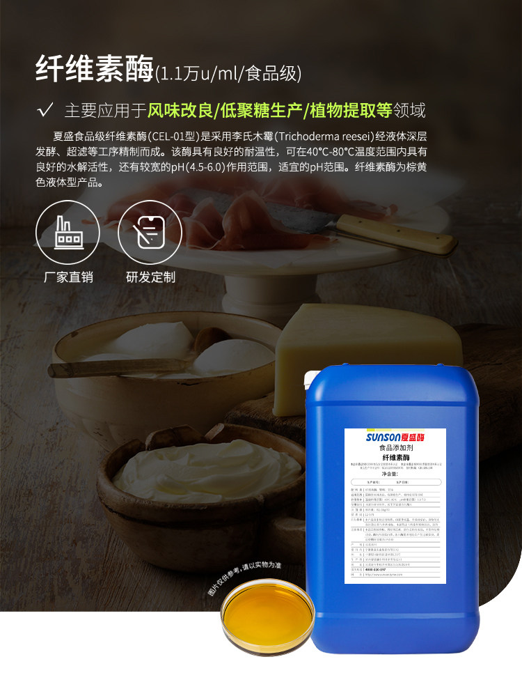 夏盛食品级纤维素酶 液体1.1万u/ml 果汁加工植物提取酶制剂