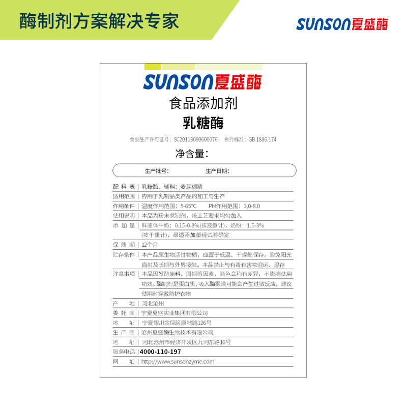 夏盛食品级乳糖酶 1万酶活力 食品增味增甜增香 食品酶制剂