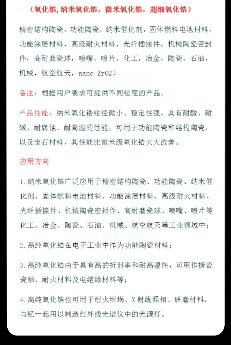 | 高纯氧化锆 100克(1微米) | ¥ 登录可见 | ¥ 登录可见 | 9999 件 | 688378291784 |  | ||||